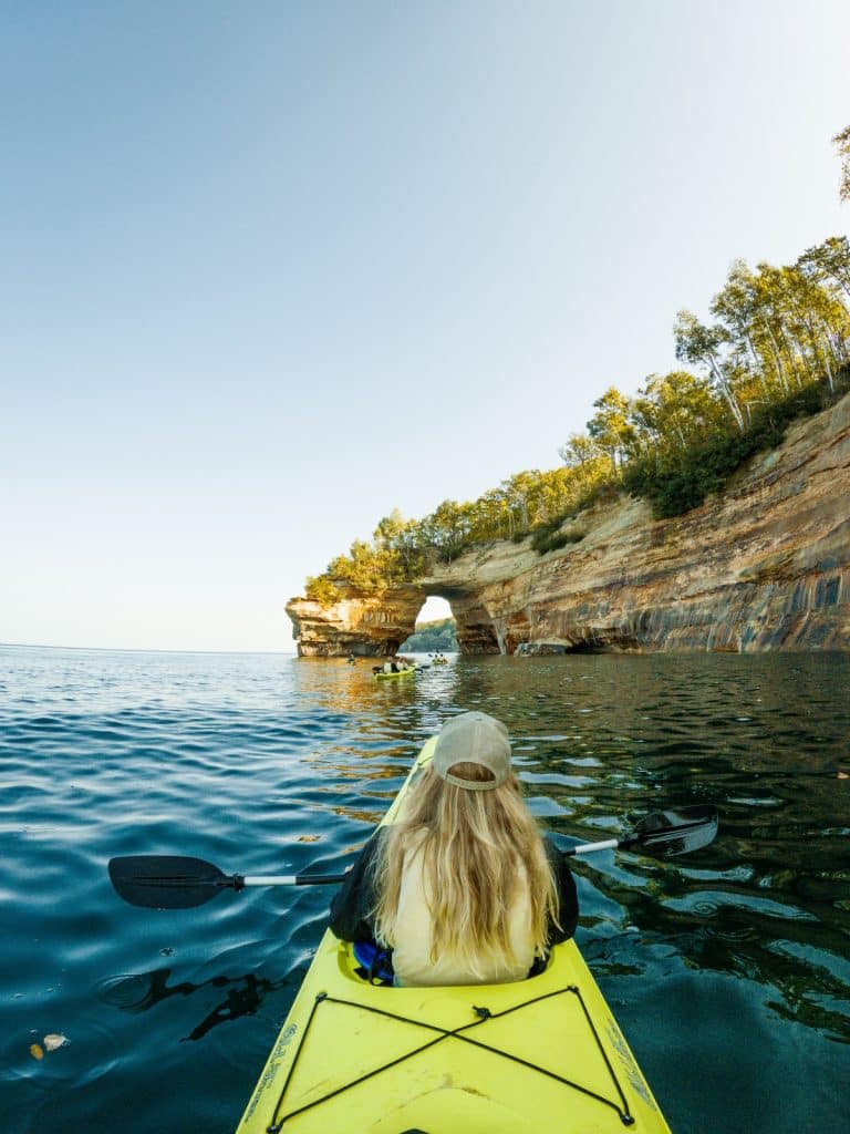 Kayaking the Pictured Rocks National Lakeshore isn’t just a bucket list item; it’s the way to experience the magic of the Upper Peninsula. With towering sandstone cliffs, hidden sea caves, and stretches of pristine beach, this stretch of Lake Superior is a kayaker’s dream. Whether you’re a seasoned paddler or a first timer, there’s no better way to explore the National Lakeshore.