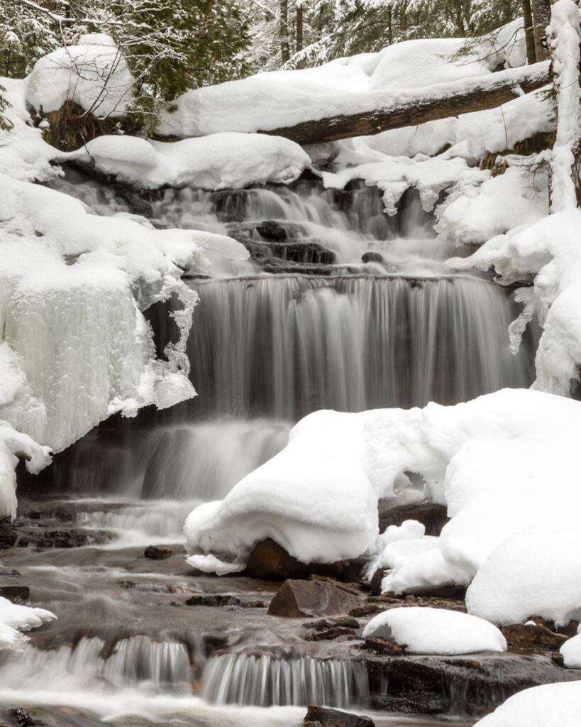 The easy 800-foot paved trail makes this one of the most accessible winter stops, even after heavy snow. It’s the perfect introduction to Munising’s winter waterfalls and an excellent spot for photography!